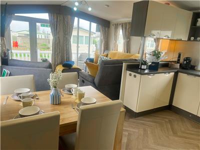 Enjoy a bright, modern living space with Smart TVs, free Wi-Fi, and a fully equipped kitchen for self-catering stays. Patio doors open onto decking and a large enclosed garden — ideal for children and pets.