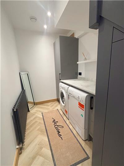Guests enter via a private entrance hall with space for coats and shoes, plus a handy utility area with: